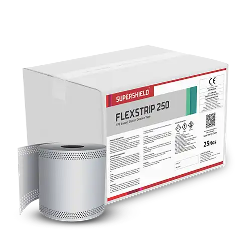 The Supershield Flexstrip range of sealing tapes exhibits exceptional flexibility and reliable, durable sealing solutions. They are specifically designed to seal both horizontal and vertical junctions as well as cracks that may occur due to repeated contractions and expansions, which are particularly effective in harsh environmental conditions that can cause damage.